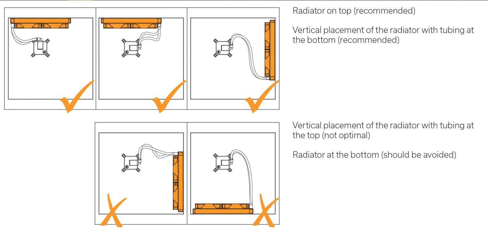 EK-Vardar High-Performance Fans - The EK-Vardar S included with the EK AIO are industrial grade high-static PWM fans, designed and built primarily for high-performance liquid cooling systems. Controlled by either your motherboard or standalone fan controller, the EK Vardar can be adjusted to run at speeds between 550 - 2200RPM for either high airflow or silent running. The EK-AIO Elite includes six Vardar fans, which can be utilized to create a push-pull configuration or if there is not enough space, create a better airflow by positioning three of the fans on the case itself.