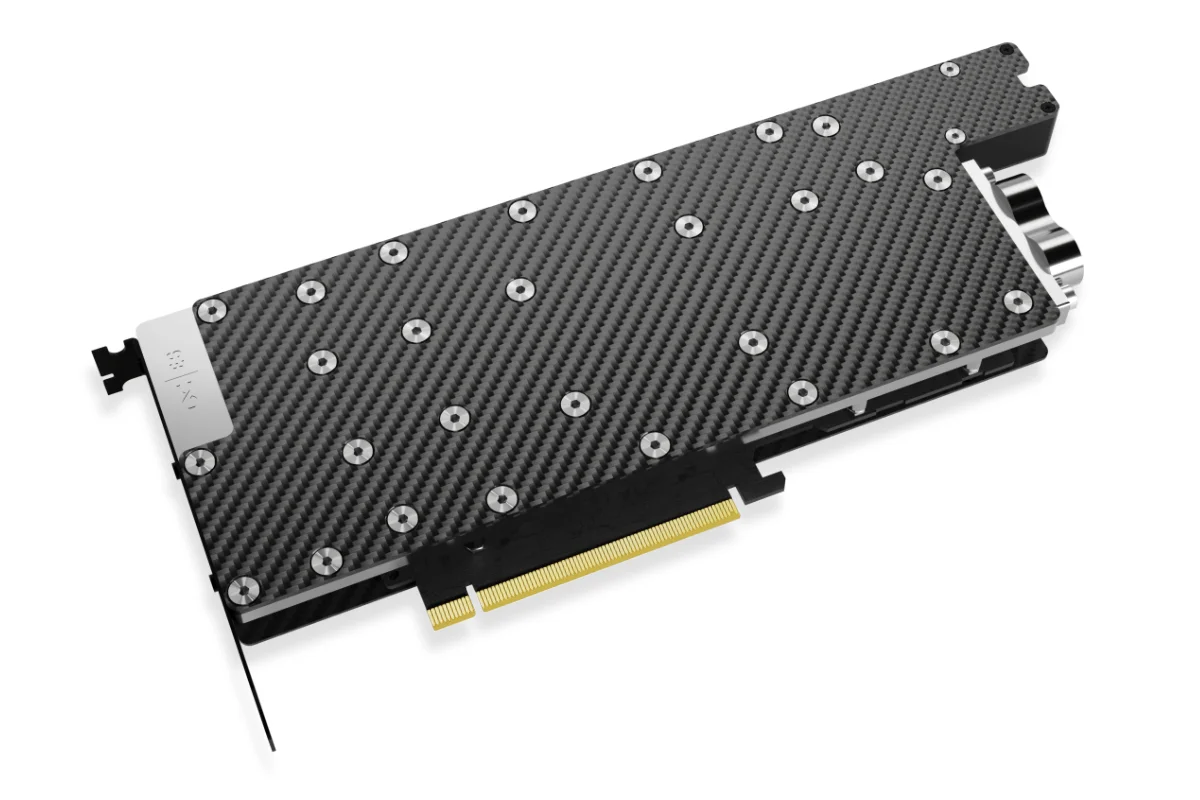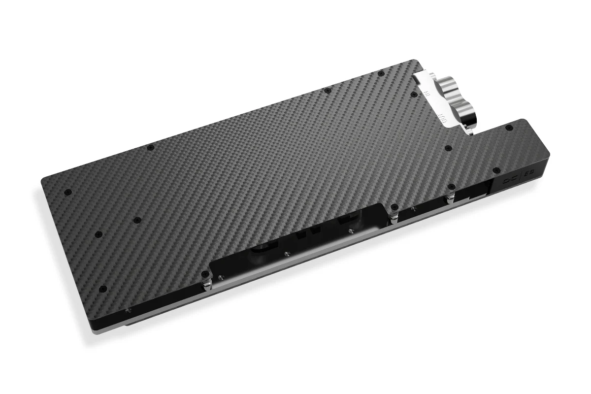 Both the top and bottom of the cooler are made from lightweight yet durable carbon. This significantly reduces the overall weight compared to conventional solutions, while the matte carbon finish adds a subtle and refined aesthetic – functional and elegant at the same time. The cooling block itself is made entirely of chrome-plated copper. This plating is significantly harder and more resilient than traditional nickel coatings, offering long-term protection against corrosion, scratches, and mechanical stress – ideal for continuous 24/7 operation.