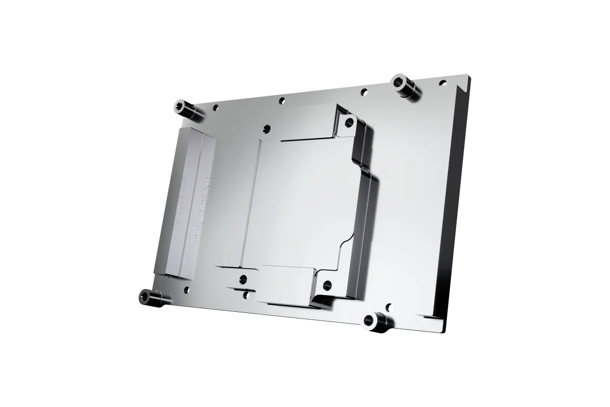 The visual design of the GPU water cooler has been only slightly changed. A special highlight is the newly added Core emblem above the jet plate, which underscores its affiliation with the Core series and visually enhances the design. The series continues to rely on high-quality brass connectors, guaranteeing optimal quality and safety. The specially adapted aluminum backplate covers the entire back of the copper cooler and ensures a clean and uniform appearance. The acrylic, combined with the aRGB lighting, enables even and impressive illumination of the entire cooler.