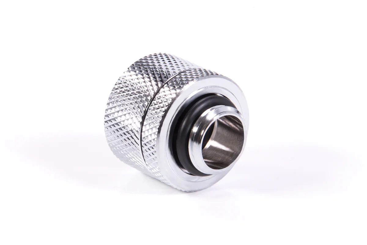 Tightness is essential for a water loop. Alphacool uses three sealing O-rings for these Eiszapfen fittings which seal against the Tube. Two O-rings are integrated in the fitting, while the third O-ring serves as a seal and is attached together with the HardTube. The union nut compresses the O-ring ensuring a tight seal. This not only provides a triple lock, but also increases the tensile strength of the HardTube. This means that it requires considerable force to pull the HardTube out of a tightened fitting.