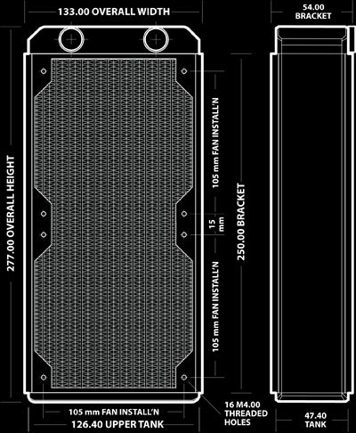 The Black Ice® GTX240 raises the bar on performance on the GTX platform by offering a dual 120mm fan configuration. The GTX240 utilizes the same radically optimized Black Ice GTX dual core design maximizing heat exchange, coolant flow, and stealth silent operation.