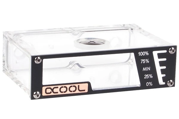 Construction-wise, this reservoir is also a great piece of hardware: Extra-strong Plexi increases stability of the reservoir and ensures extra rigidity. Filling can be done via the 3/8” thread in the front third of the reservoir, which is sealed with a black nickel plated screw plug during operation. By simply pulling the reservoir forward from the drive bay, it can be filled easily. Make it even easier for yourself by connecting a Fillport!