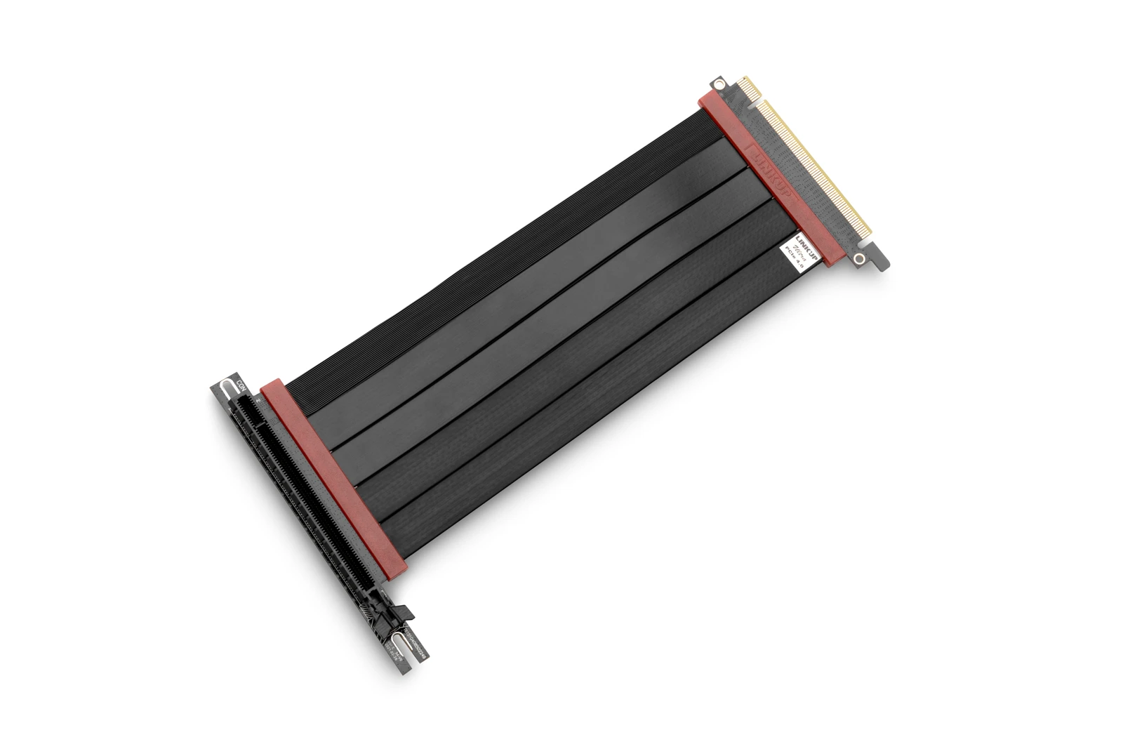 4-layer PCB with gold-plating was chosen for the best signal integrity and lifespan of the product. It was engineered with heavy-duty PCB/cable junctions to ensure increased durability. Its high flexibility comes extremely useful in tight-fit scenarios like small form factor (ITX) cases, where it truly shines.