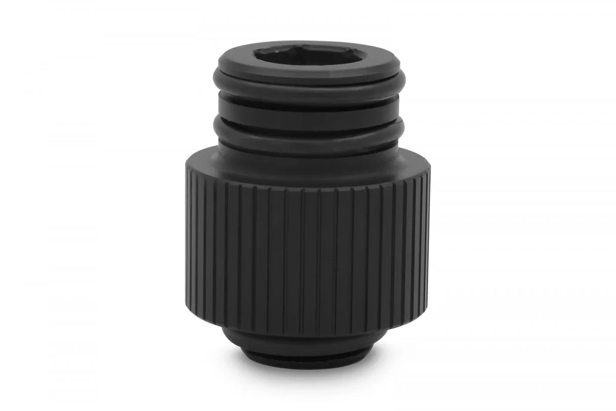 This adapter greatly helps with attaching a radiator to the Reflection² distribution plate, reducing the strain needed to screw in fittings and adding convenience and ease of use. The fitting is made of CNC-machined brass with a satin black finish.