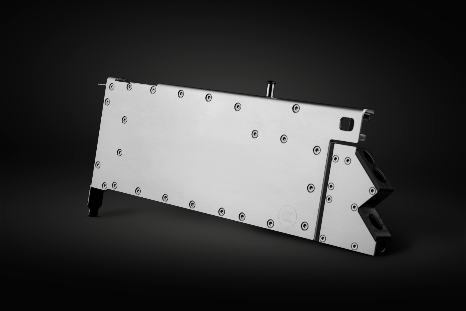 The base of the block is CNC machined out of nickel-plated electrolytic copper, while the top is laser-cut out of industry-grade stainless steel. The top plate possesses a screw-in PCIe power connector bracket to securely hold the power connector once fully assembled. High-quality EPDM O-Rings ensure the sealing, and the brass standoffs are pre-installed to enable a safe and easy installation procedure.