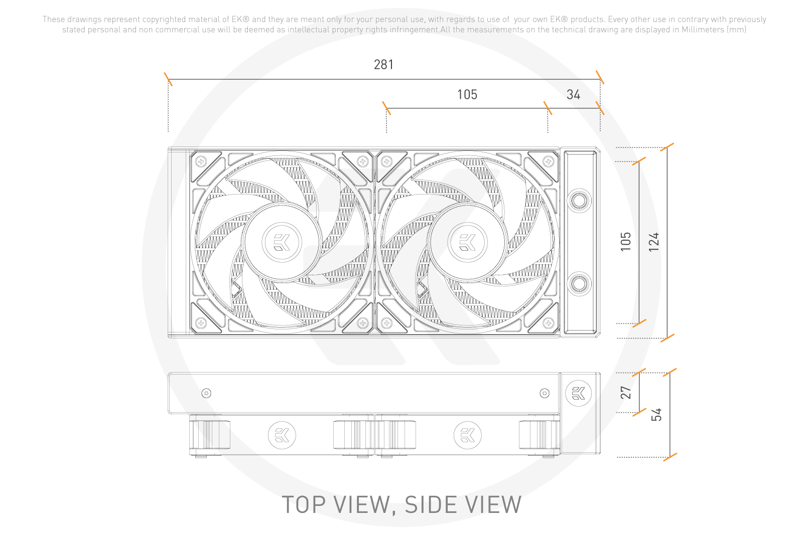 -Radiator Dimensions: 281 x 124 x 27 mm