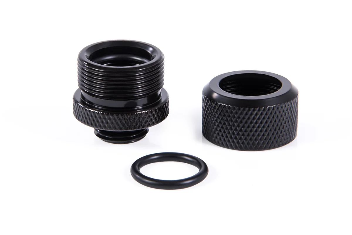 Tightness is essential for a water loop. Alphacool uses three sealing O-rings for these Eiszapfen fittings which seal against the Tube. Two O-rings are integrated in the fitting, while the third O-ring serves as a seal and is attached together with the HardTube. The union nut compresses the O-ring ensuring a tight seal. This not only provides a triple lock, but also increases the tensile strength of the HardTube. This means that it requires considerable force to pull the HardTube out of a tightened fitting.
